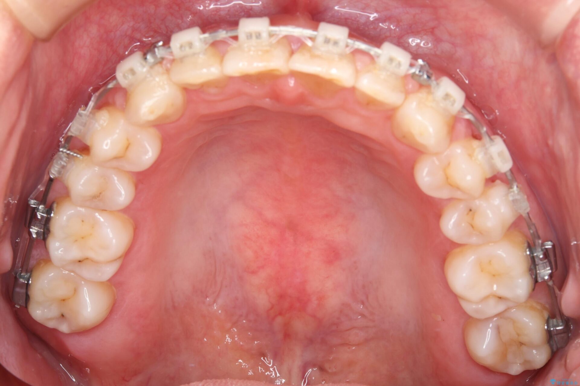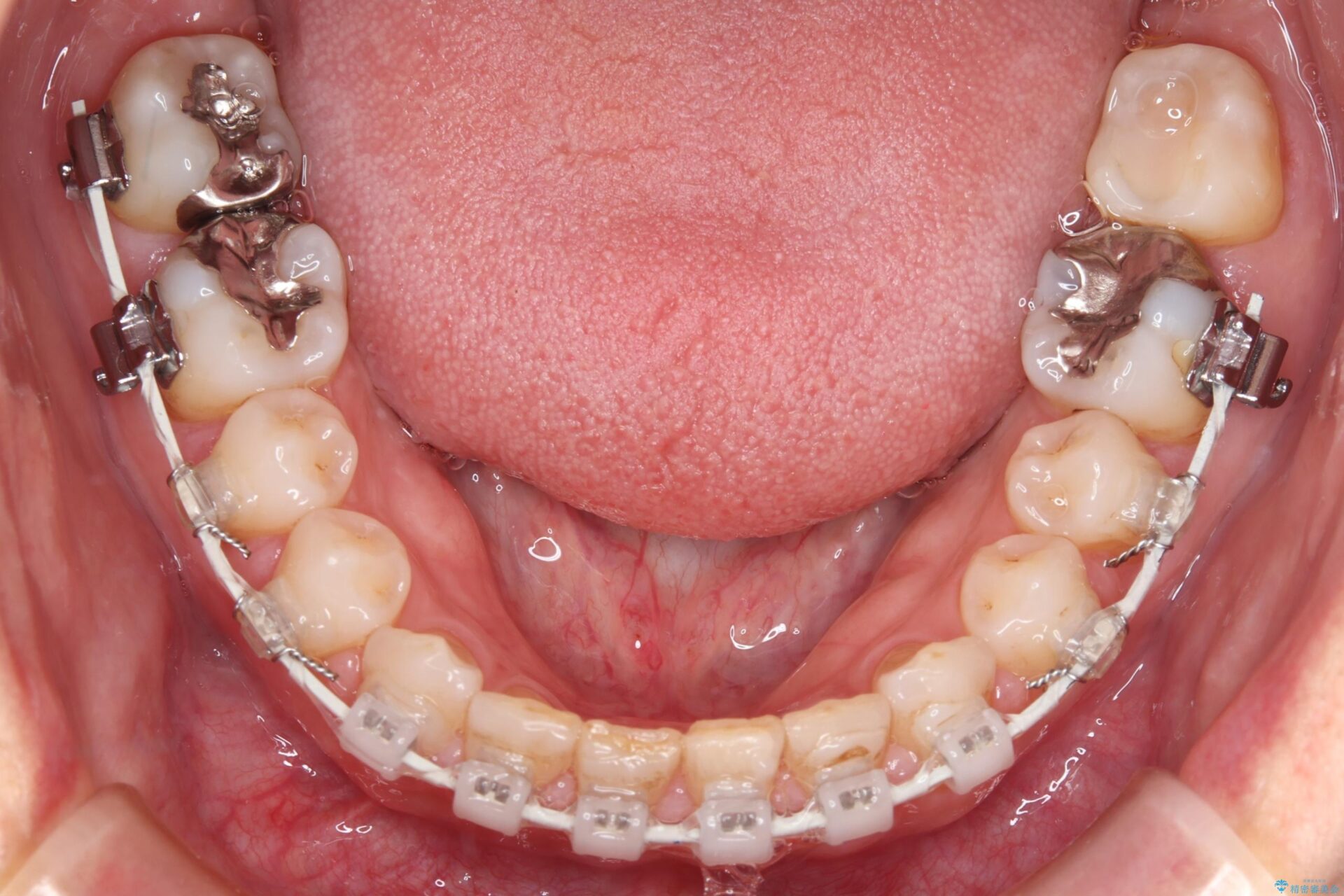 今回は抜歯の必要がなかったため、ワイヤー矯正とインビザライン矯正のどちらも選択可能でした。患者様のご希望を尊重し、表側に装置をつけるワイヤー矯正で治療を進めることになりました。