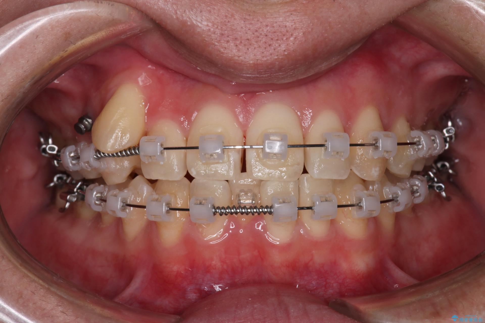 歯の移動にオープンコイルとMI(歯肉に埋入するネジ)を用いました。