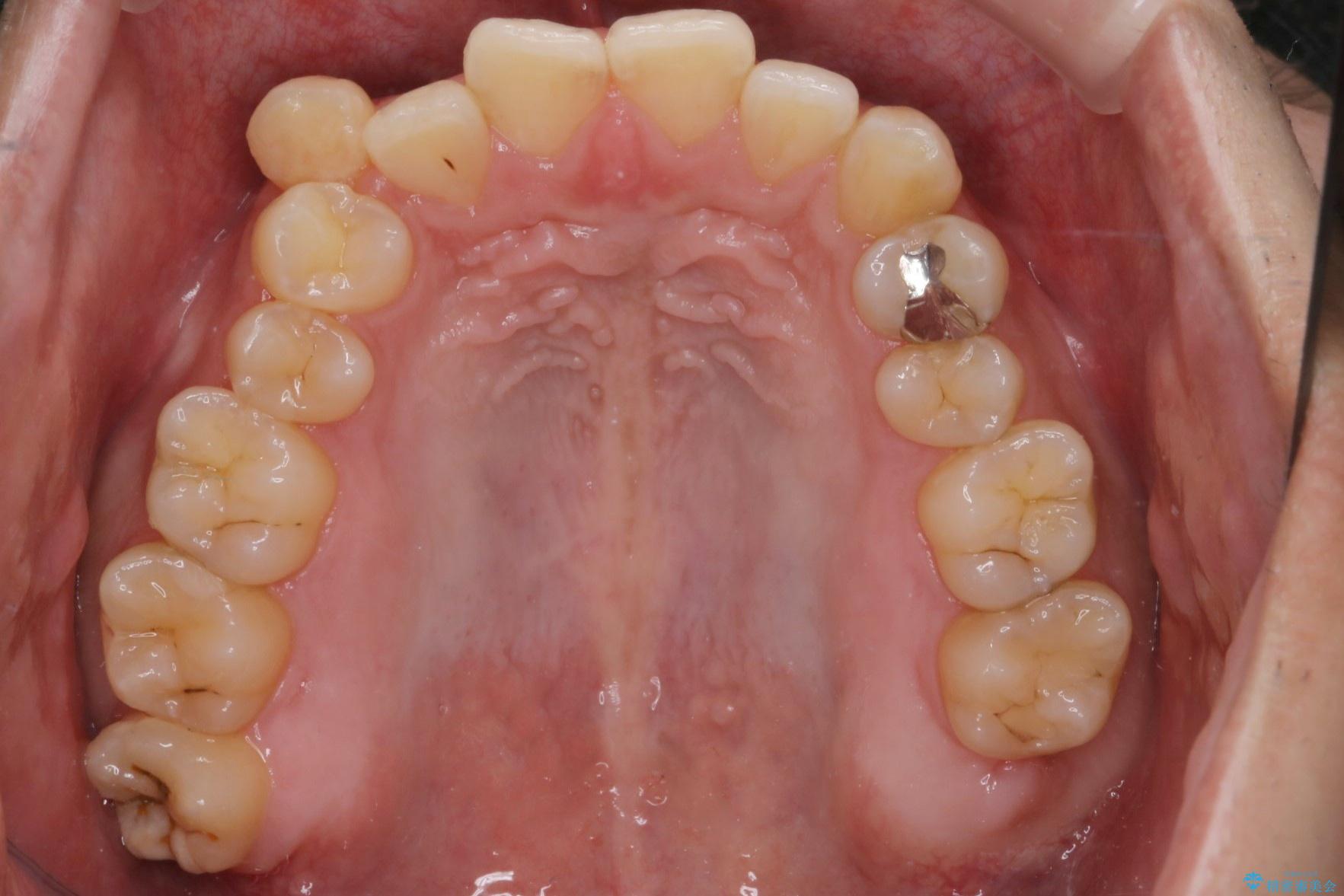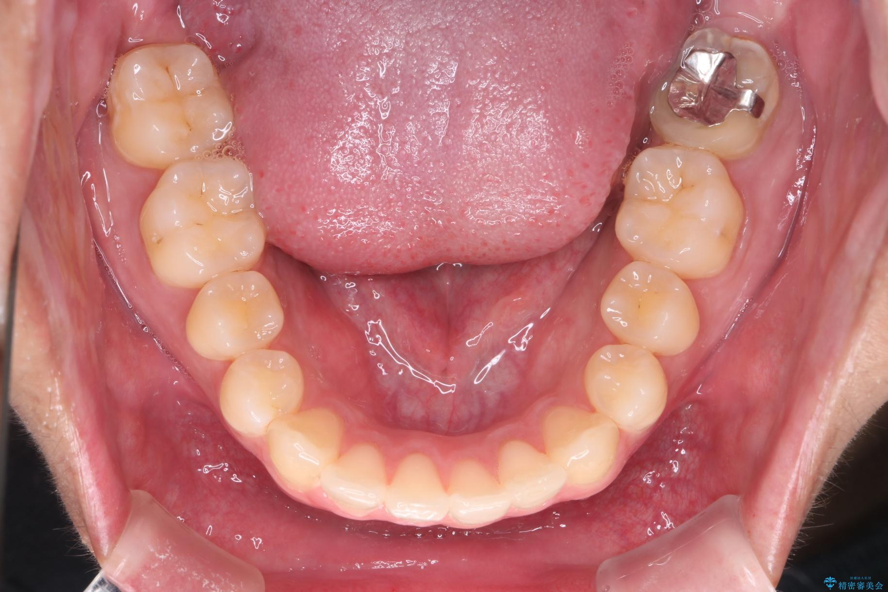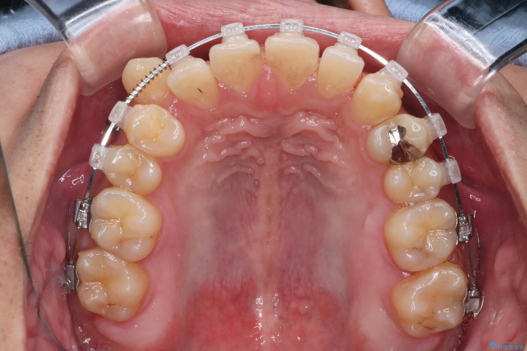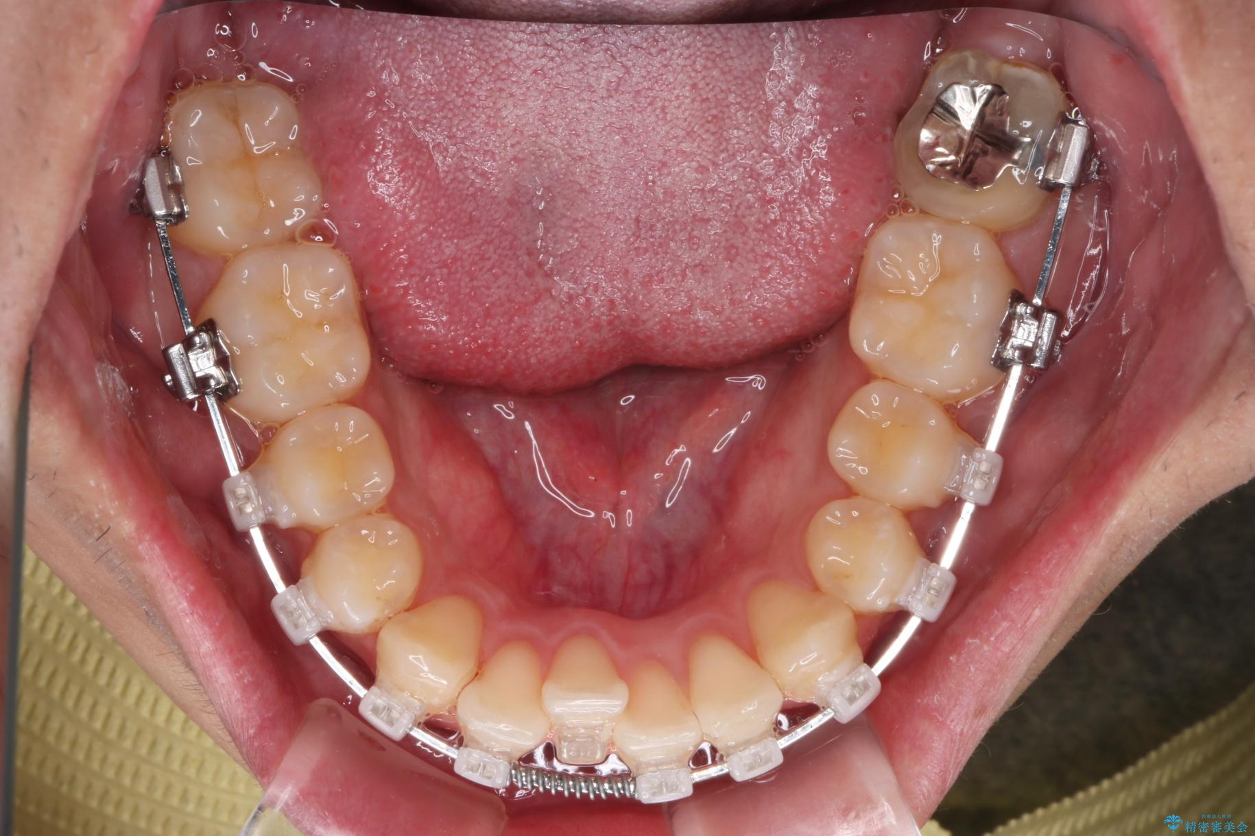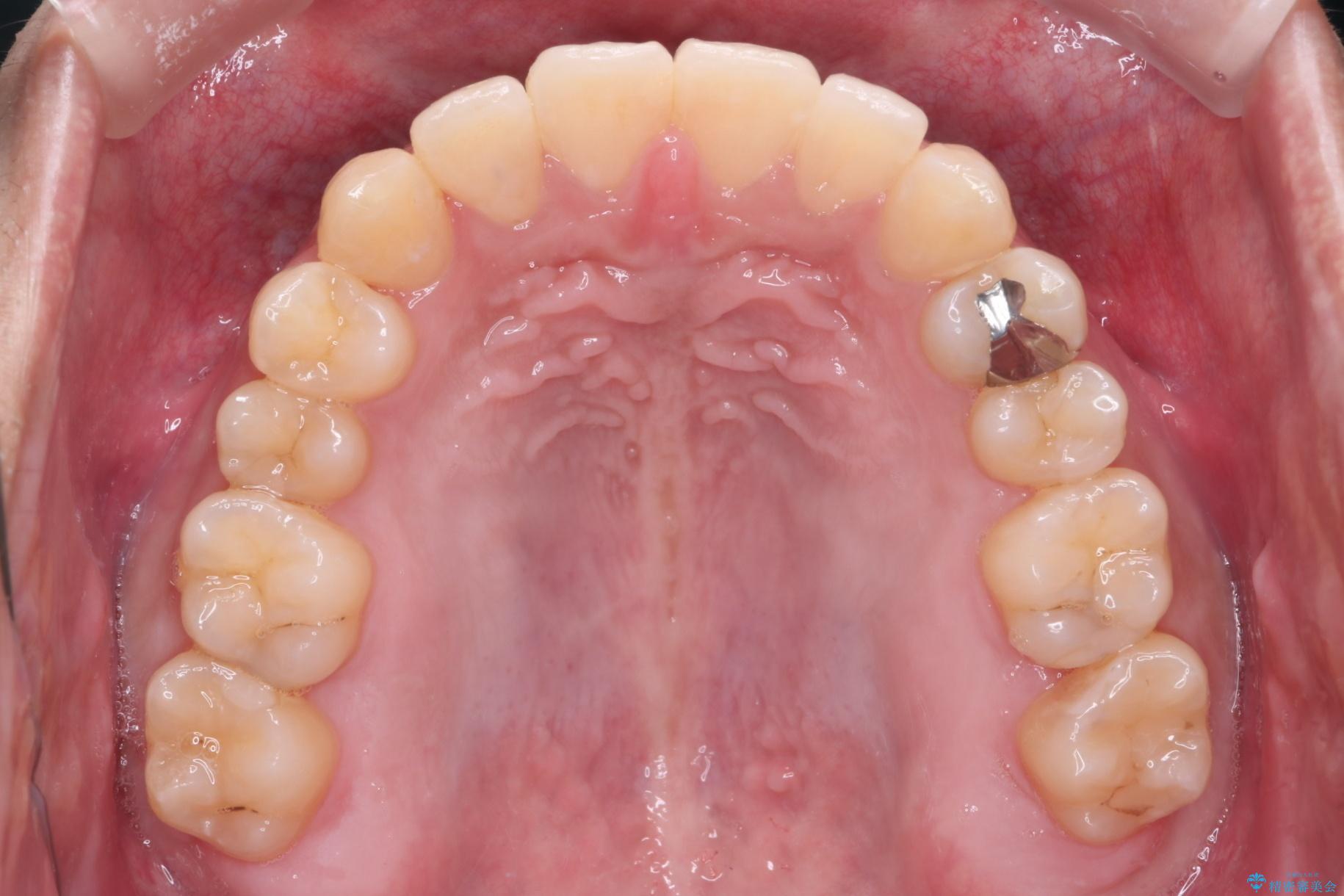 精密検査の結果、抜歯の必要はないと判断しました。臼歯を遠心移動させ、歯列をワイヤーで整えることでスペースを確保し、IPR(歯と歯の間を削る処置)を加えて歯並びを綺麗にする治療計画を立てました。