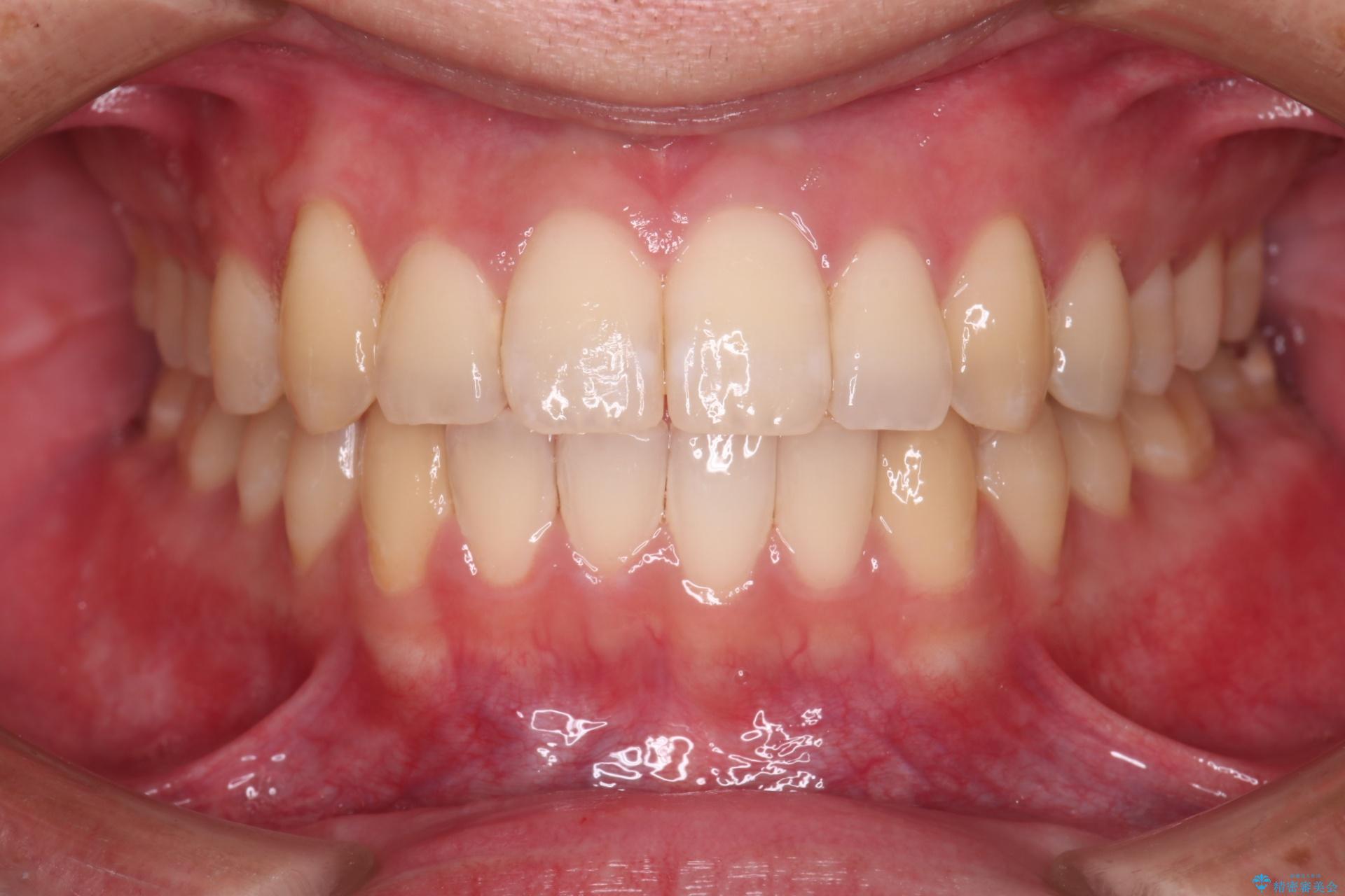非抜歯での治療だったため、1年半以内という短い期間で矯正を終了することができました。主訴であった八重歯とがたつきが改善され、大変ご満足いただきました。