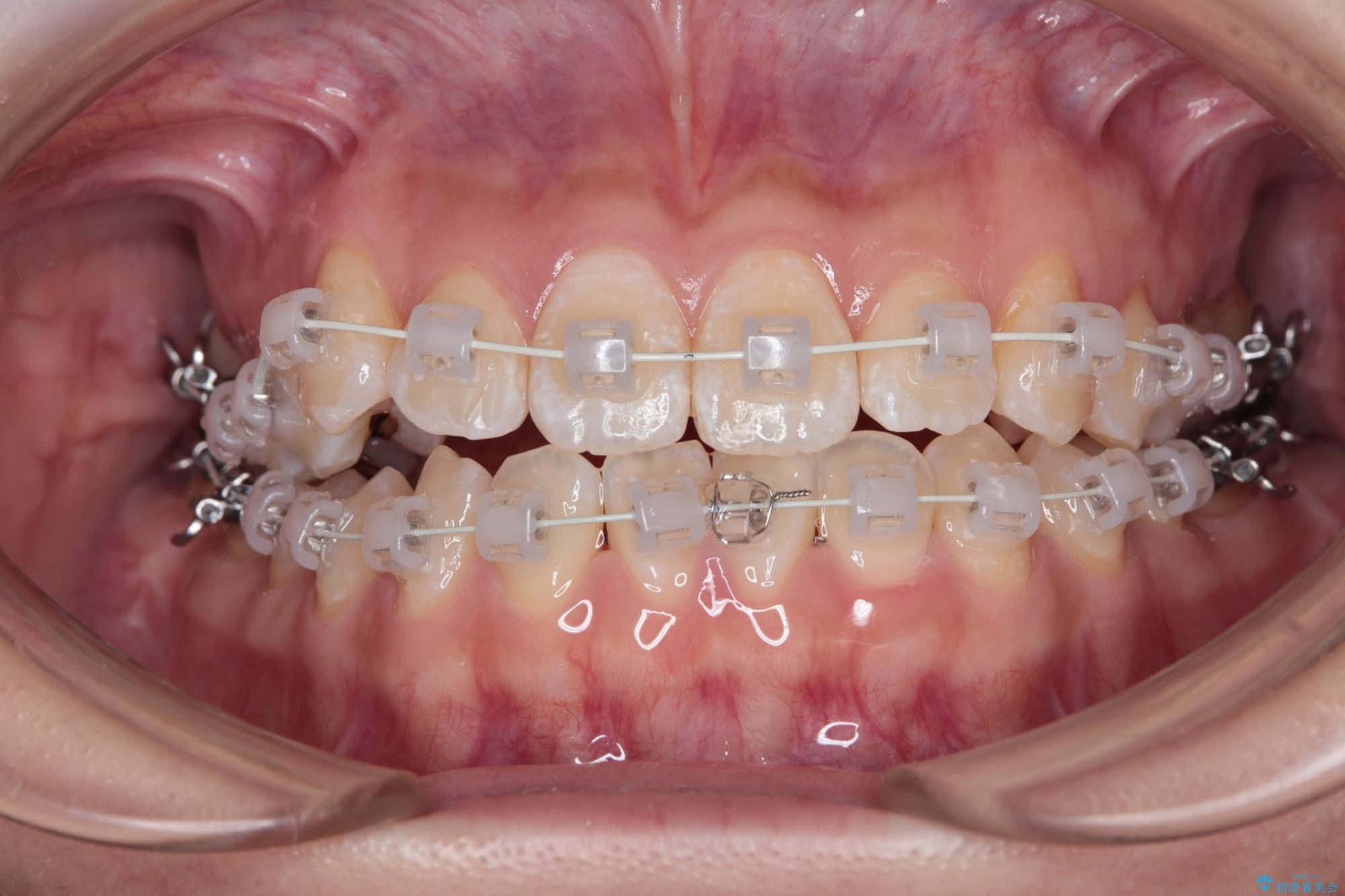 また、セラミックと銀歯の部分は装置が脱離してしまうので、矯正用の仮歯に変えて治療を行いました。