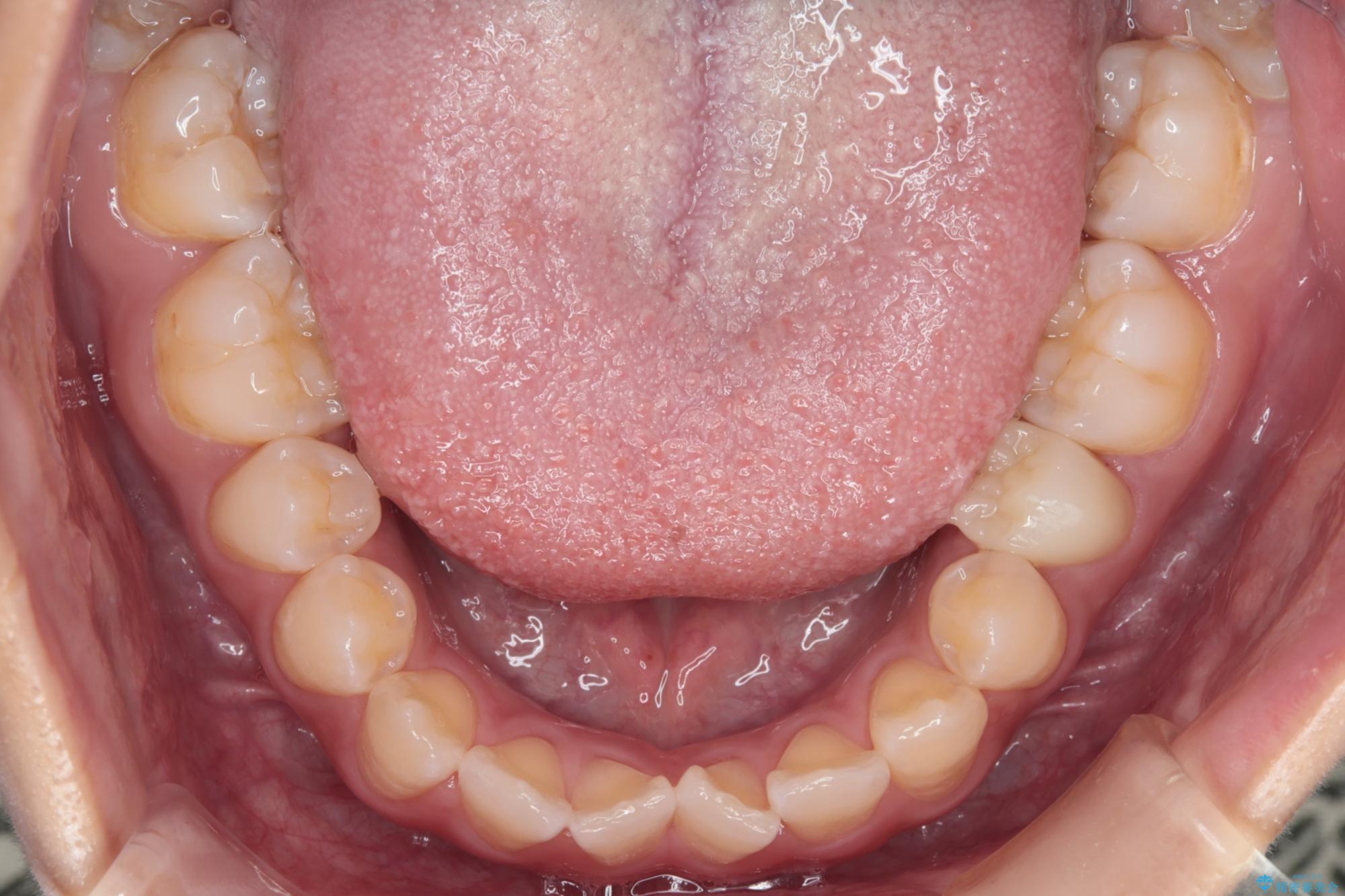 精密検査の結果、抜歯はせずIPR(歯と歯の間を削る処置)を行い、目立ちにくい審美ワイヤー装置にて歯列拡大を行うことで歯列を整える治療計画を立てました。