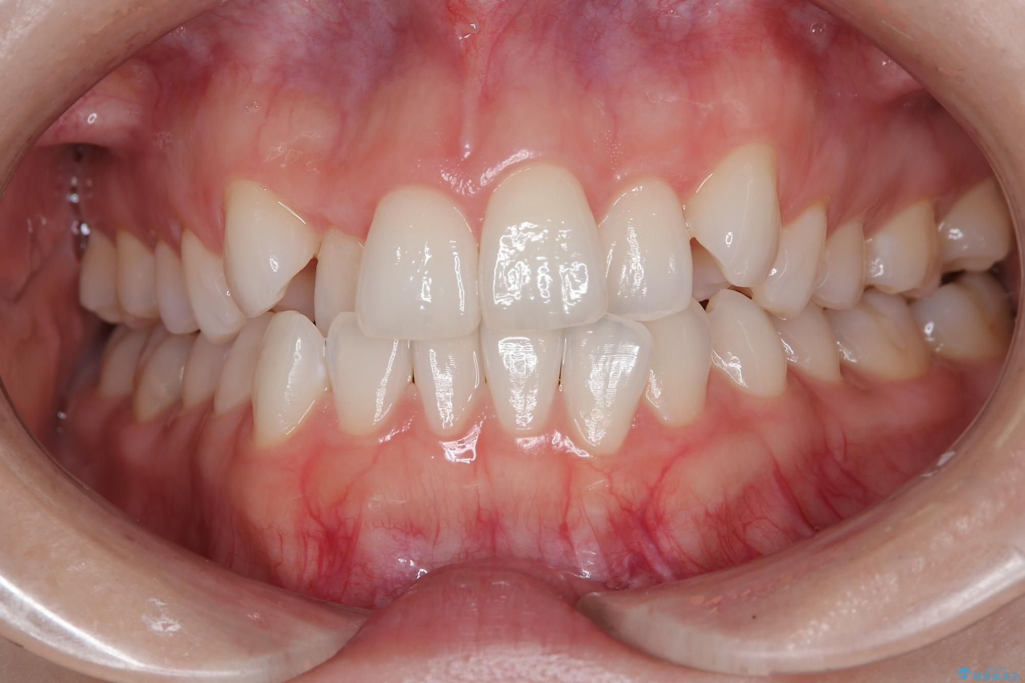 リンガルアーチを用いて遠心移動を行なったことで、抜歯せずに八重歯が改善され綺麗な歯並びになりました。