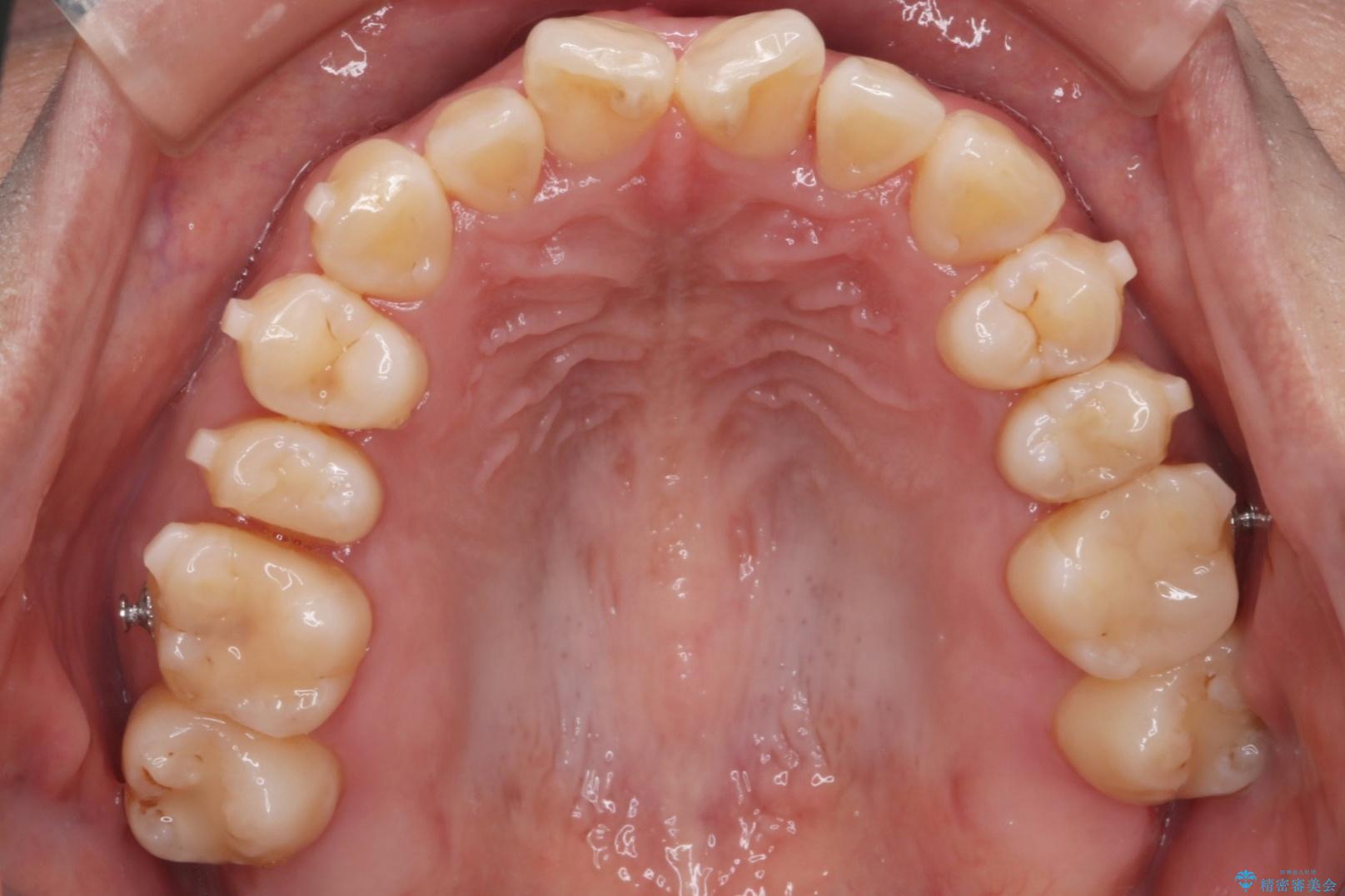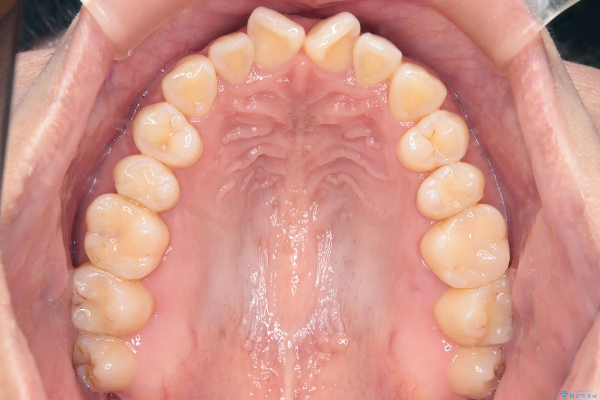 前歯の捻れとがたつきを改善するために、IPR(歯と歯の間を削る処置)と歯列拡大をすることで歯並びを整えていく治療計画を立てました。